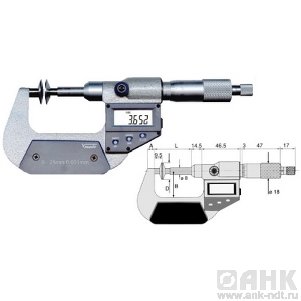 Микрометры Vogel цифровые зубомерные диапазон измерений от 0-25х0,001 мм до 150-175х0,001 мм, с выводом данных RS 232C, тарелочки не вращаются, предназначены для высокоточного определения линейных размеров. Измерение производится абсолютным или относительным контактным способом. Основным преимуществом инструмента является низкая погрешность, которая колеблется в промежутке значений от 2 до 50 мкм и зависит от класса точности микрометра, а также от измеряемого диапазона. В качестве преобразовательного механизма выступает так называемая микропара – винт и гайка. Включены в ГосРеестр.