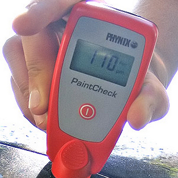 Работа с толщиномером возможна на плоскиx или слегка изогнутых поверхностях. Когда плавающий сенсор прислоняется к поверхности, прибор замеряет толщину нанесенного на нее покрытия. Данные выводятся на четырехзначный буквенно-цифровой дисплей в микрометрах (1000 мкм = 1 мм) или милах (английская система мер). У нового авто примерно одинаковая толщина краски. Расхождение в 10-15 мкм микрон при этом считается нормальным, так как покрытая лаком поверхность имеет волнообразную структуру, хоть человеческий глаз и не воспринимает столь малые «перепады высот». Но если на какой-то части автомобиля толщиномер покрытий показывает более толстый слой краски, значит, она была окрашена (возможно, после аварии).