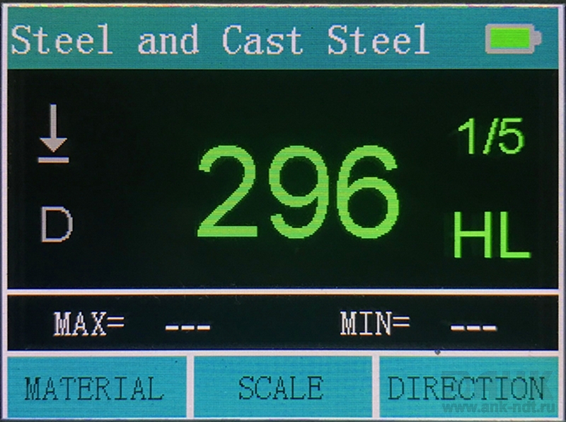 • Лёгкое переключение по различным шкалам твёрдости (HL, HB, HRB, HRC, HRA, HV, HS)