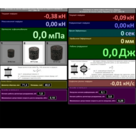 Определение прочности на сжатие образцов асфальтобетона на скорости 3 мм/мин;